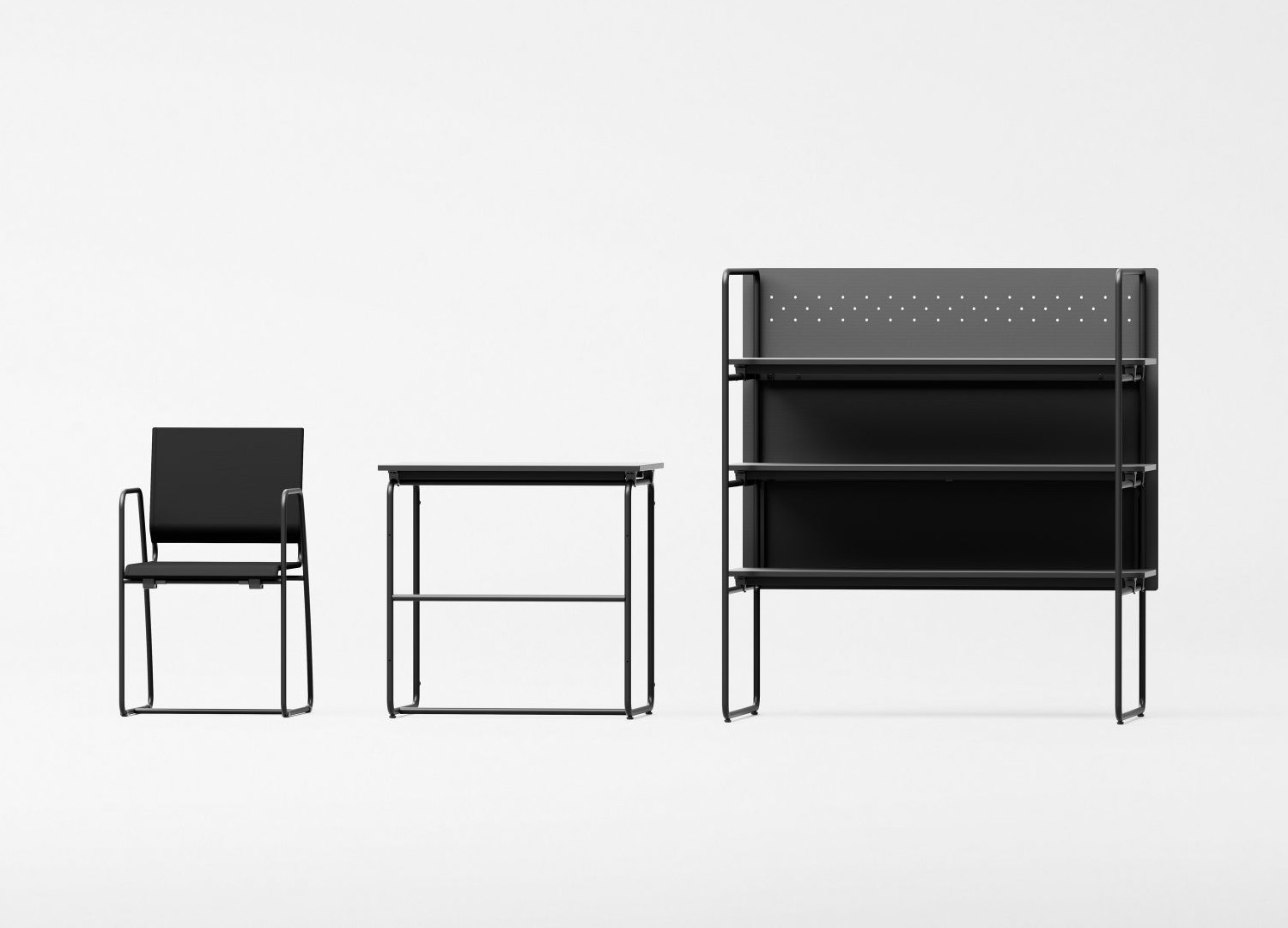 Designed to optimize the office experience, ext. is a series of creative furniture developed by the studio for Okamura, capable of adapting easily to different work styles. Comprising a desk, chair, and shelf, the system allows modular combinations that meet a variety of organizational needs, from individual tasks to group meetings. Thanks to custom-designed clip joints, each piece can be assembled or disassembled without tools, while height and configuration can be adjusted effortlessly. This flexibility makes it possible to reconfigure spaces without replacing furniture, connecting people and environments, and supporting the evolution of the office over time.
