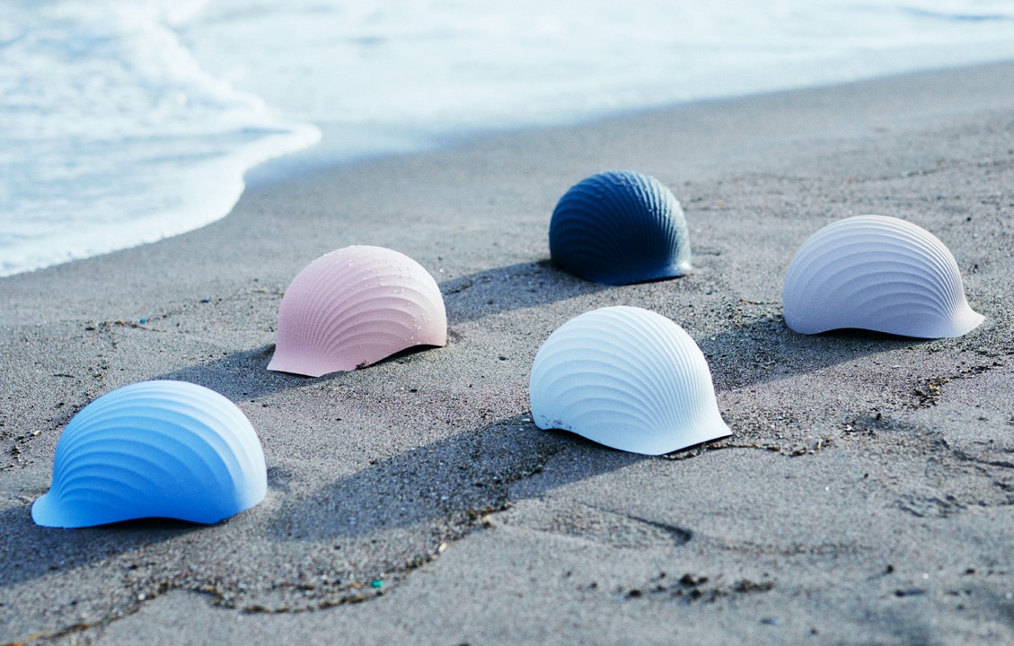 Innovative in concept and form, Shellmet is a helmet made from Shellstic, a recycled plastic derived from scallop shells, reducing CO₂ emissions by up to 36% compared to virgin materials. The project addresses an environmental challenge in the village of Sarufutsu, Hokkaido (Japan), where 40,000 tons of shells are discarded annually and, in this case, transformed into a valuable resource. Inspired by biomimicry – the imitation of natural mechanisms for technological applications – the helmet uses the ribbed structure of shells to ensure lightness and strength, combining sustainability, functionality, and a design language grounded in organic geometry.