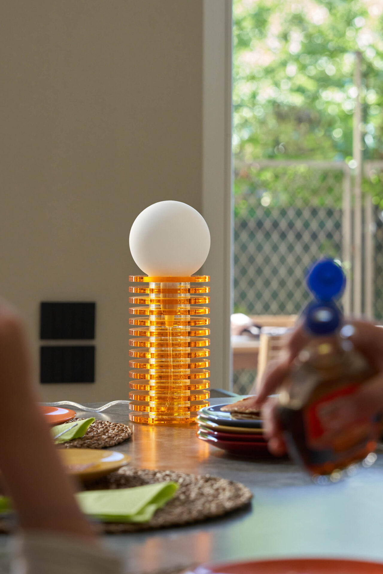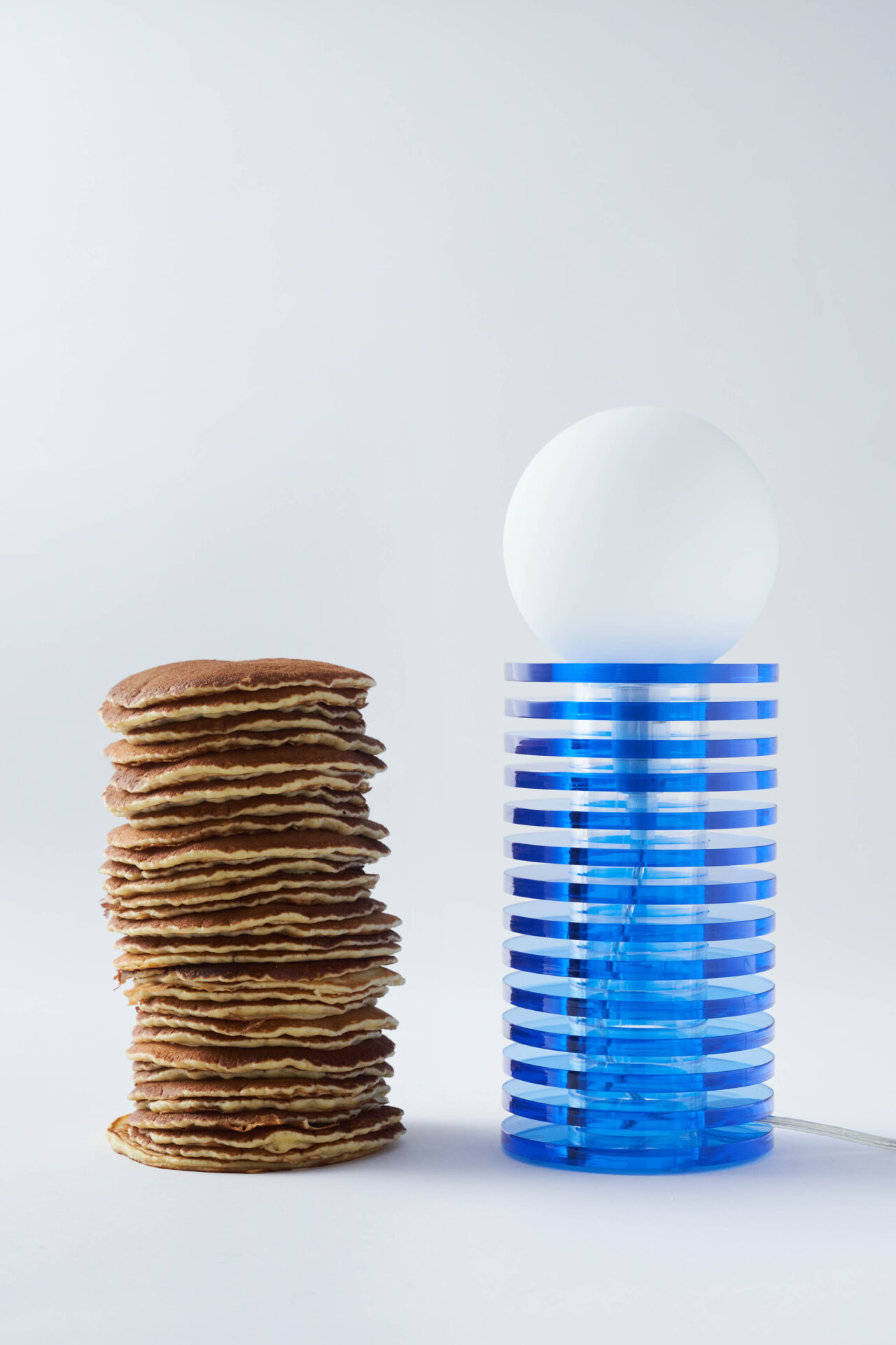 That’s what Lampcake is: a stack of pancakes made of Green Cast®, a 100% recycled cast acrylic, and the tangible memory of a moment that, hopefully, brings a smile. Entirely made in Italy, the first lamp was conceived as a truly unique object, an icon: 1,200 numbered, non-replicable pieces. Its color palette — transparent, orange, green, and blue — is dedicated to the four members of the founders’ family, a symbol of how this project embodies the brand’s core values: uniqueness, belonging, the search for meaning, and sharing.