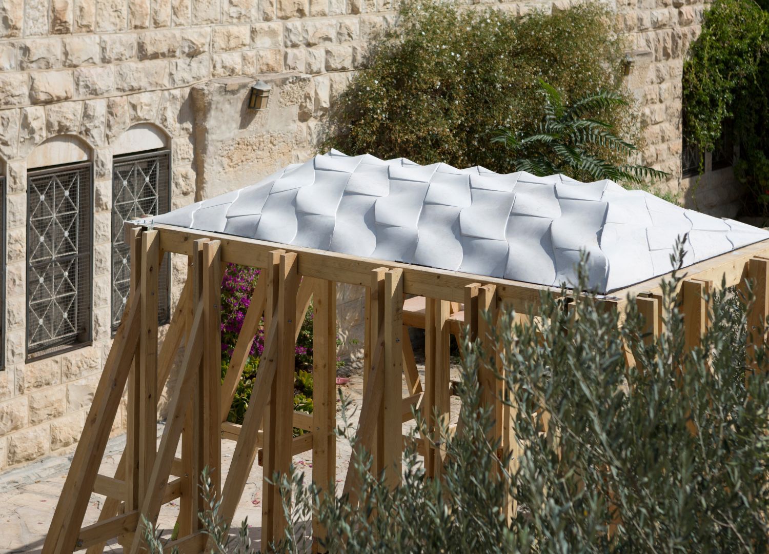 Palestine is a land of stone, but not all stone is created, or treated, equally. A century-old Ottoman regulation still requires that buildings be constructed in stone, yet in practice, most structures are now built in reinforced concrete and clad in a thin stone veneer. “Over time, stone became only decorative”, says Elias.