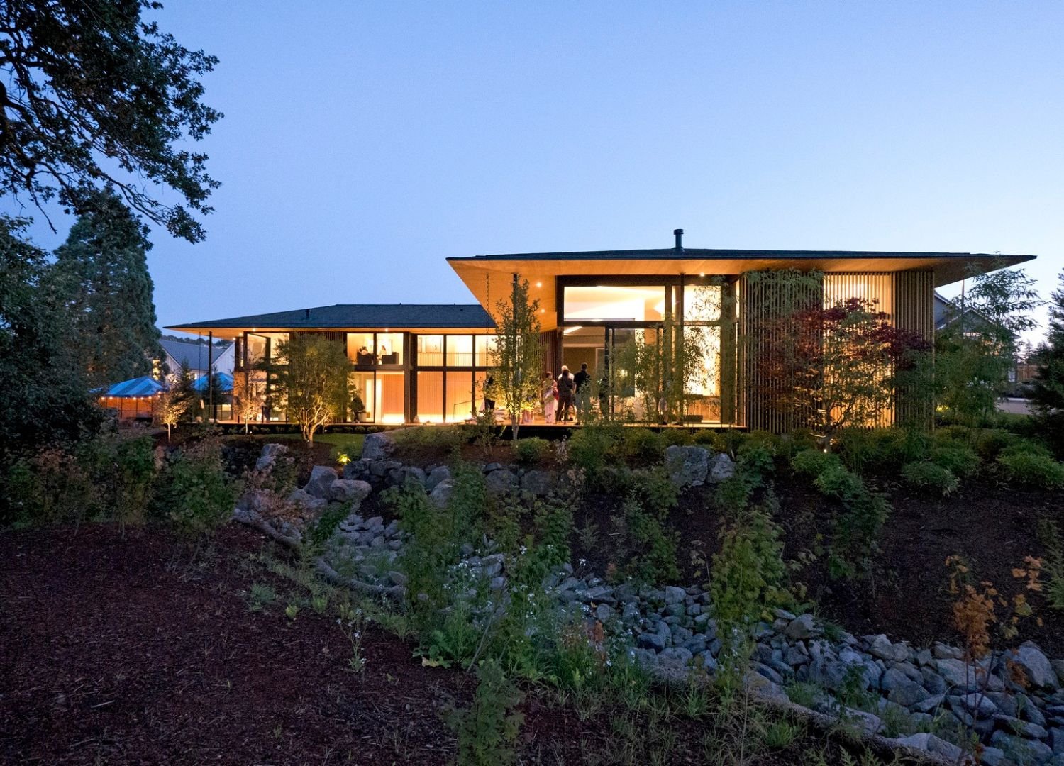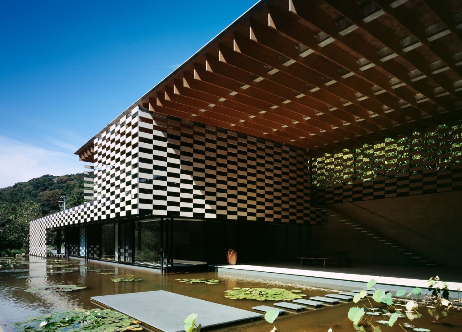 Kengo Kuma has a thing with wood, indeed: this wooden house is a model for compact sustainable homes. Based on the Japanese principle of Shakkei, which involves using natural landscape to complement the building, this is also a beautiful homage to Frank Lloyd Wright’s Fallingwater, as the L-shaped plan of the Suteki House opens to the creek in front of it.