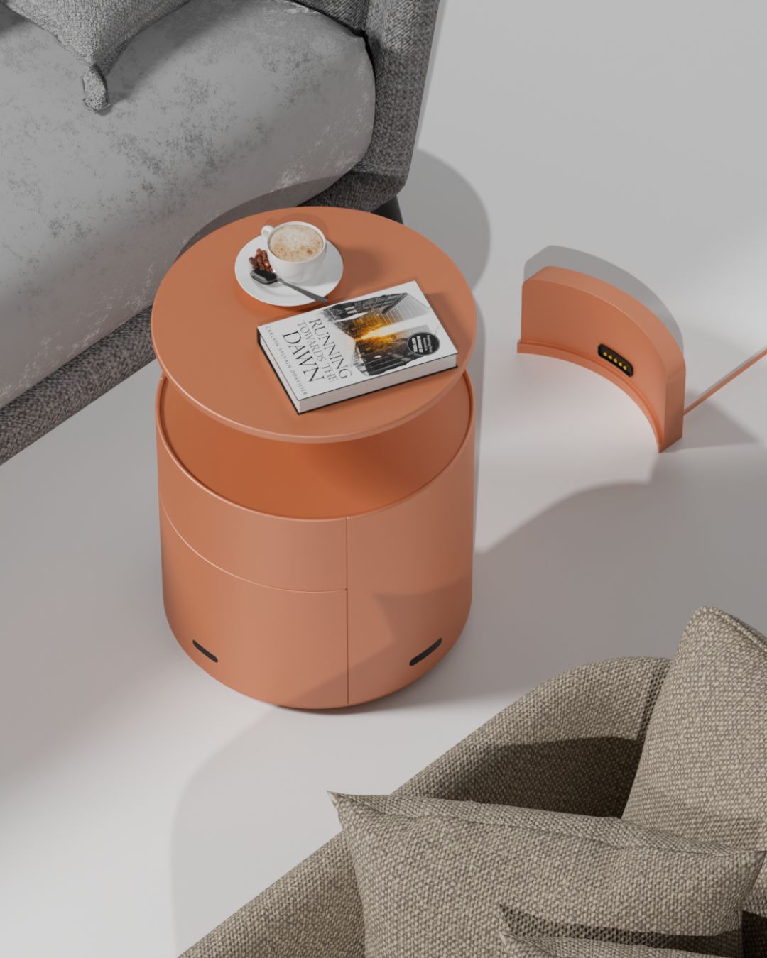 Bable is a new kind of companion robot designed by Abin Rajendran to seamlessly adjust to human rhythms. By resting when you do and waking to support your day, this side table builds a subtle emotional bond rooted in presence and reliability.