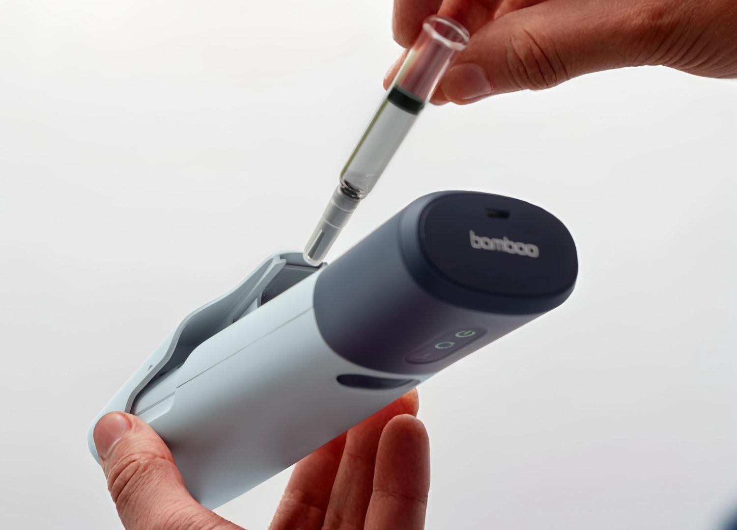 Unlike the disposable devices that have dominated the market so far, Bamboo is a reusable electromechanical autoinjector, reducing plastic waste. Users load a prefilled syringe, which is the only disposable component, into the reusable body, use the device through its simplified interface, and then remove the spent syringe to throw away. The device works with standard ISO prefilled syringes currently used in validated filling lines, avoiding investments into new systems and keeping the supply chain straightforward.