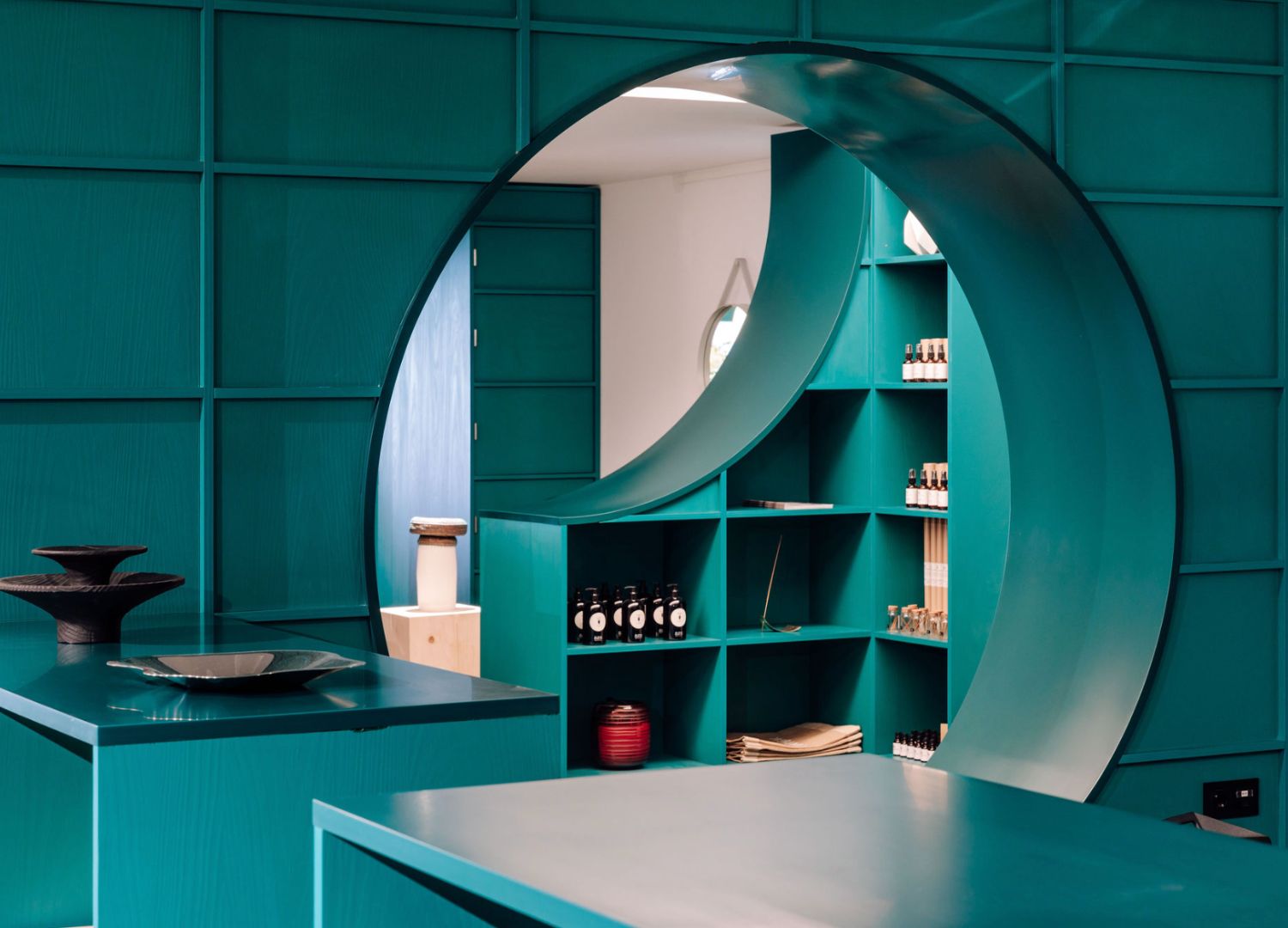 With a window display not much larger than 1.5sqm in size, the architects and the brand have done well to make every item within the store feel elevated as if it were a piece of artwork on display. This is thanks to smart features including the curtains on the display wall, which pick up the green hue of the store’s display structure while allowing user’s working in the space to separate displays into smaller areas.