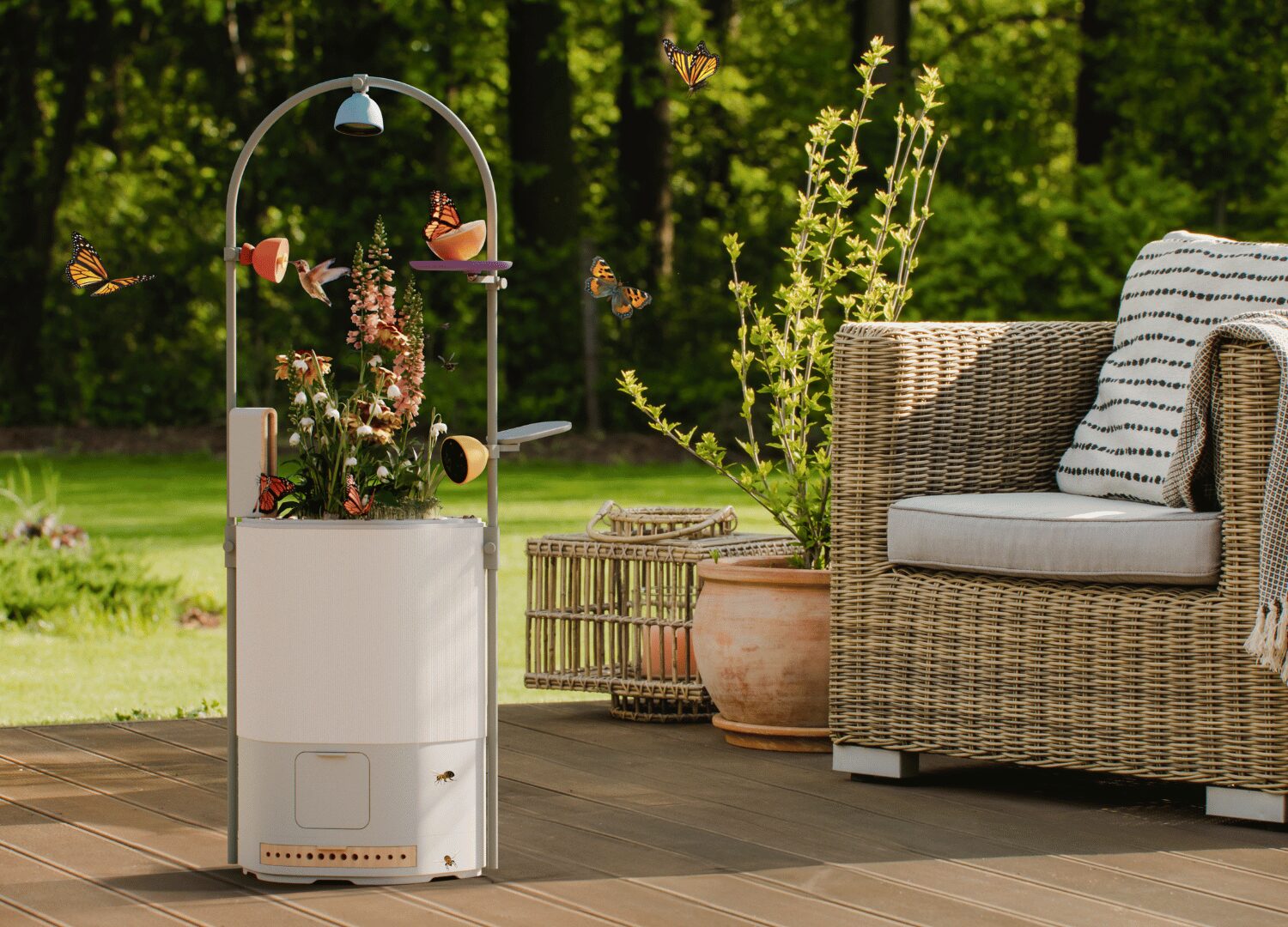 Another key accessory in the system is Petal, the high-performance smart nature camera that helps identify floral and animal species (up to 2,000 different ones) and monitors their growth and health. The camera is designed to withstand extreme weather conditions, is fully waterproof and dustproof, making it suitable for year-round use. It can shoot 4K time-lapse videos and 12MP macro photos and is equipped with an LED ring that provides proper lighting for flora and fauna, improving performance in low-light conditions.