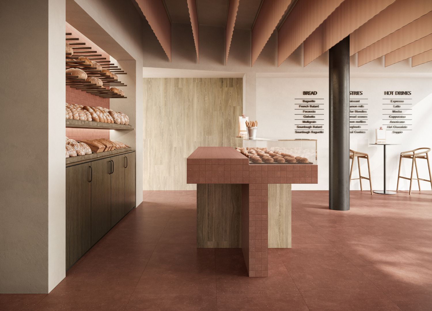 Similarly to Lithos, Concept’s format ranges have been expanded and also include the 20mm version for outdoor applications. The decorative elements for this collection include 20x20cm tiles with low-relief abstract geometric patterns, mosaic tiles with various tesserae options, and large ribbed surfaces in a 60x120cm size.