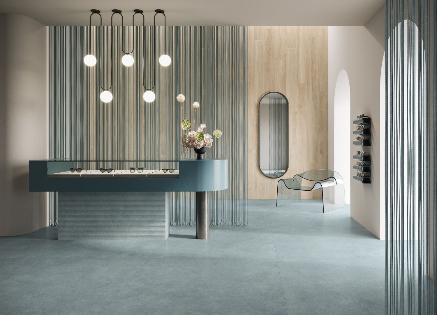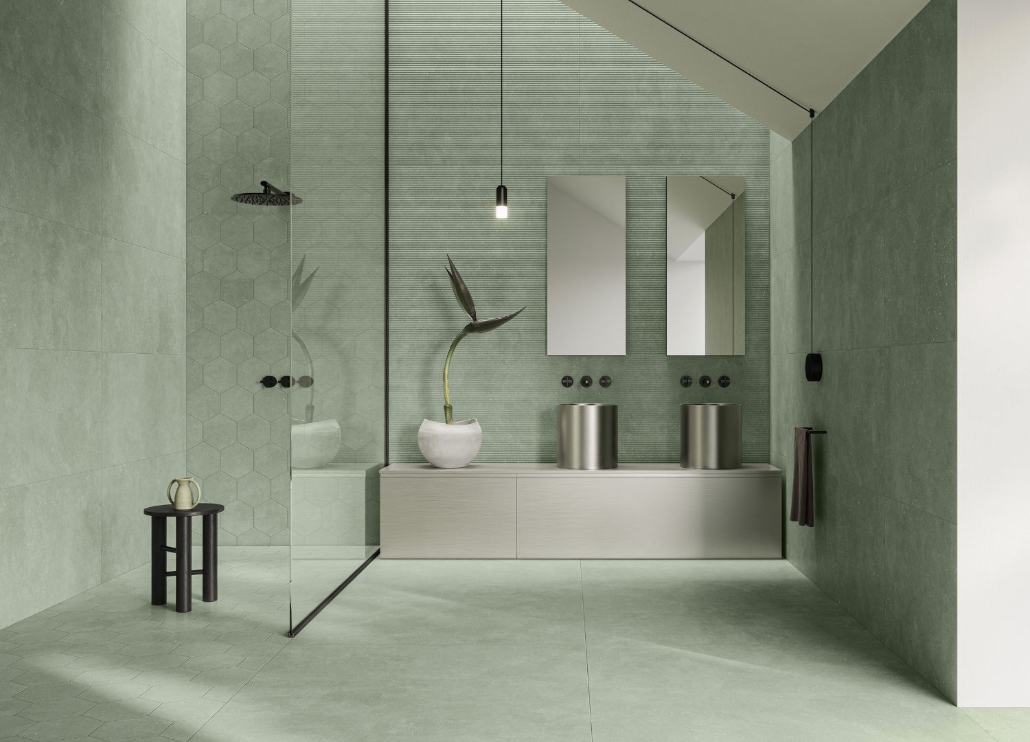 The Concept collection focuses less on natural stone and more on urban living, sophistication, and contemporary design. Its tiles draw inspiration from metropolitan style, transforming the industrial appeal of concrete into a more refined solution. Its finishes are soft and cloudy, available in 7 playful colours: blue, green, red, black, grey, greige, and white.