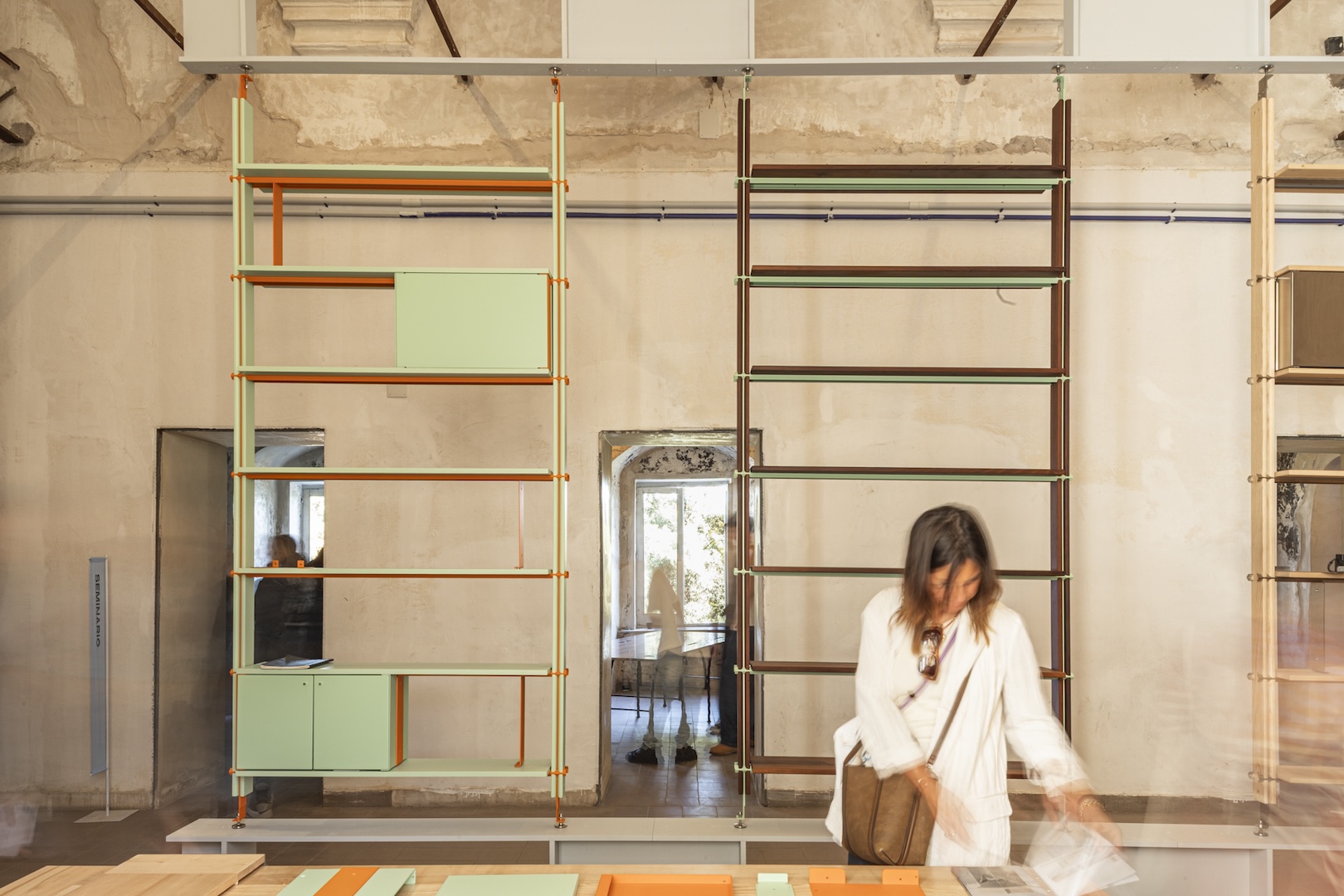 Clean and bold, with strong editorial and graphic details – such as the junction between the wooden section and the metal rod – this new version stands out for its use of color and versatility. Closed modules and dividing elements add layers and rhythm, turning a simple shelving system into an architectural gesture.