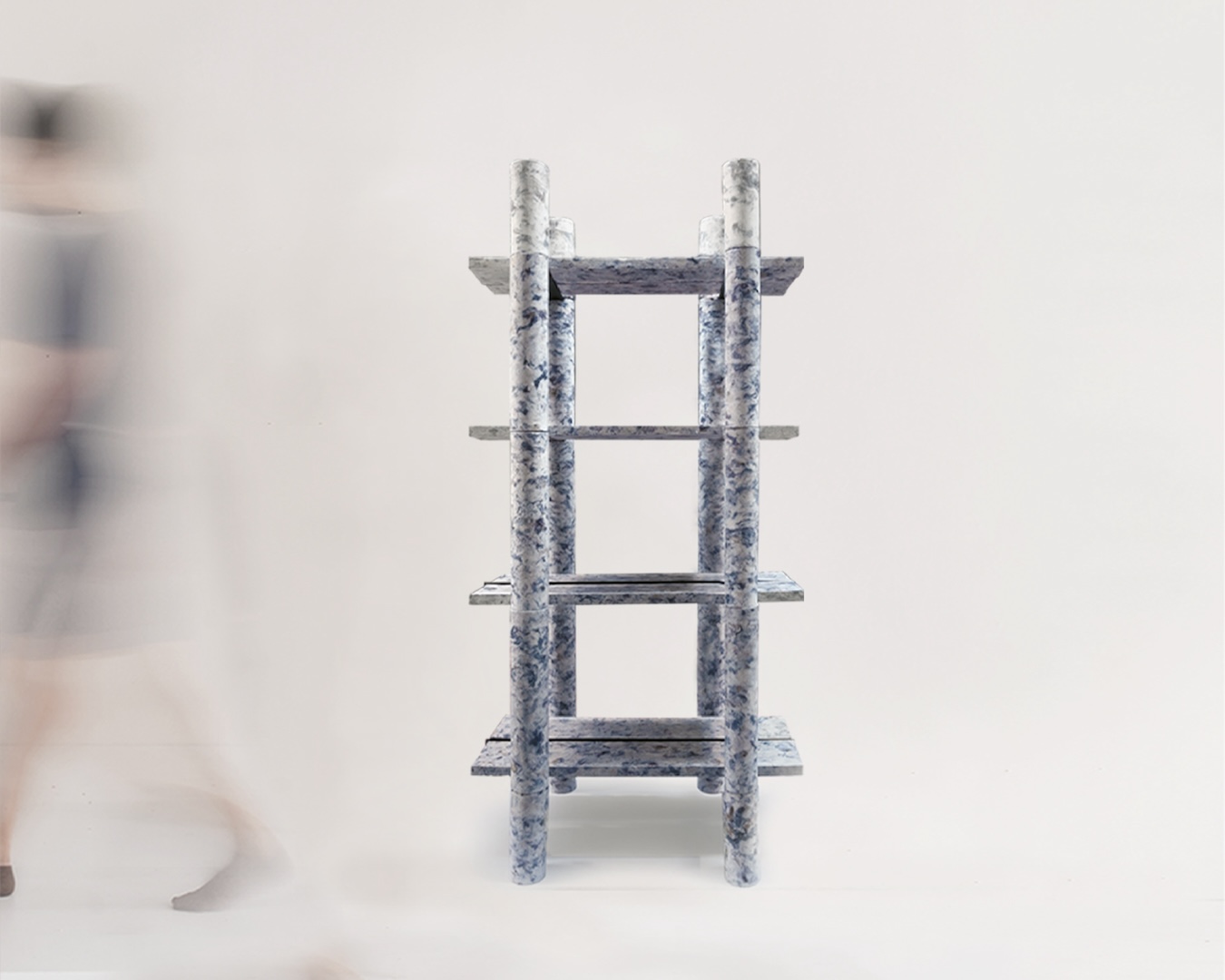 In Naples, he presented his own take on textile sustainability with the evolution of his project Telare la materia (wave the matter), showcased through a bookshelf developed with DLA Lab, a Genoa interior design studio focused on contract spaces, that merges primordial lines with futuristic intent. The result is a versatile, beautifully coherent object – one that originates from waste and returns to inhabit our homes as naturally as any other domestic piece.