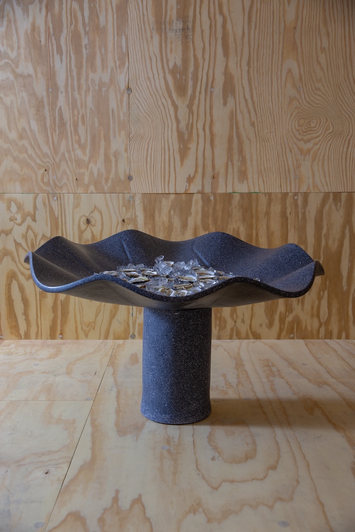 Shellf Life is a US-based studio giving new life to seashell waste collected from restaurants. Its founder, Felicia Neuhof, grew up in Providence, Rhode Island, an area known for its love of shellfish – so the statement comes naturally. By crushing and processing these shells, the studio has created a patented paste that can be molded into a wide range of applications – from furniture to finishes – with varying textures and densities.