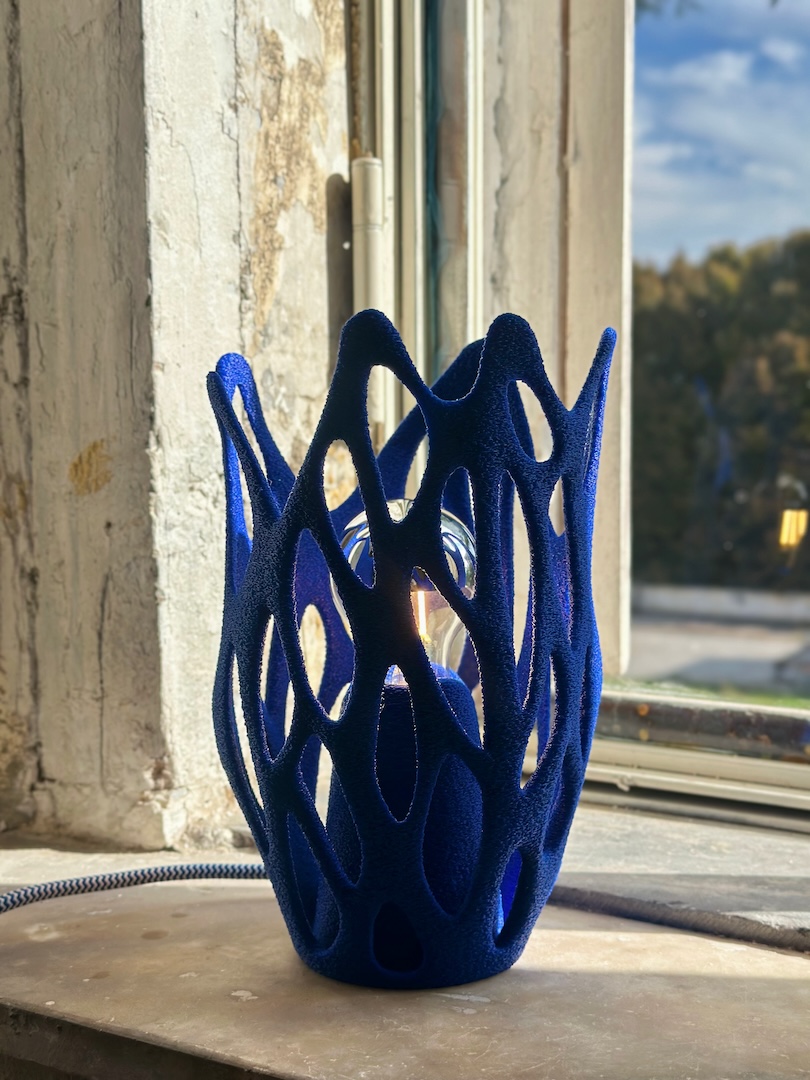 Presented in the Seminario section, Cornu Design introduces a young, independent voice guided by the dialogue between nature and technology. Founded by Beyza and Mustafa Nizamov, the studio translates organic movements produced in PLA through 3D printing in their work.