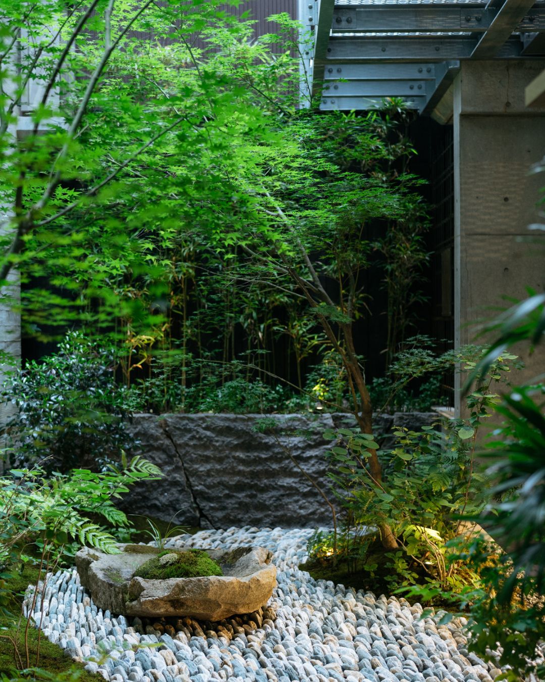 His response was two wings connected by a bridge across a Zen garden, with pocket gardens threaded through every floor all the way up to a rooftop garden with panoramic views of the city and its surrounding mountains. The vertical journey through the building replicates something of the horizontal depth experience of a traditional machiya: a sequence of thresholds, contractions, and openings that keeps recalibrating your relationship to inside, outside, light, and green.