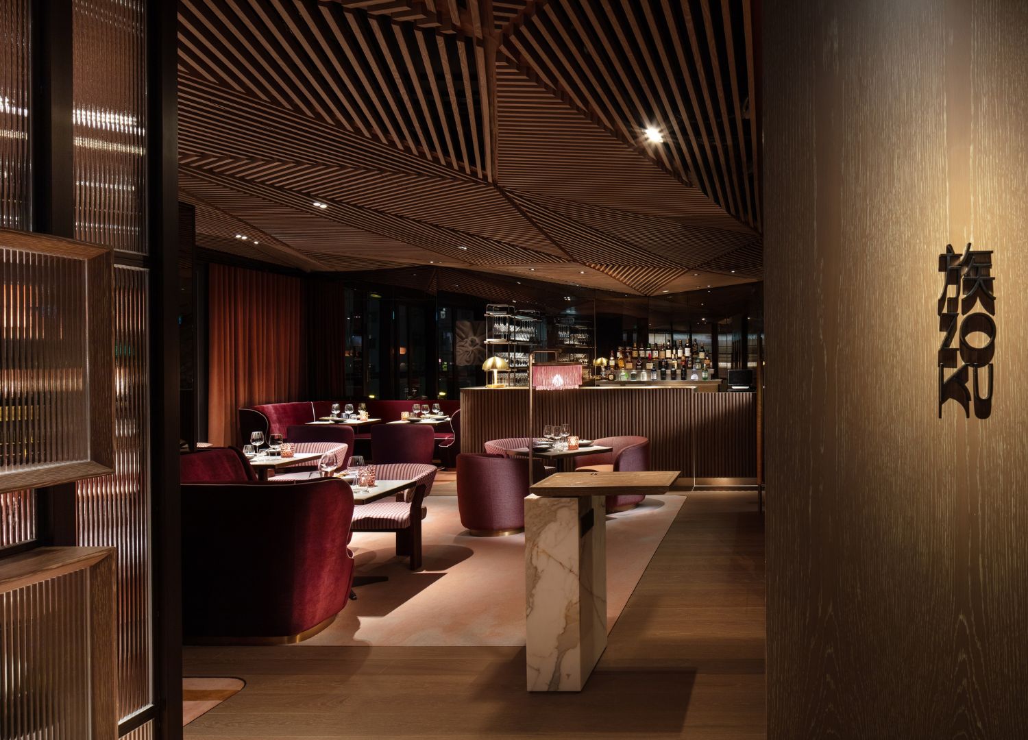 The Hari houses two restaurants, each with its own character. Lucciola is an Italian restaurant and bar, inhabiting the ground floor with a casual and effortless vibe. The design is chic and charming, with an international take on typical Italian hospitality. Zoku, the Japanese restaurant, features asymmetric origami-inspired ceilings, pink shades and velvet, setting the stage for the extravagant dining experience. The restaurant’s dining room leads to The Terrace, an outdoor bar with a spectacular wall of patterned marble anchors a 3-storey green wall decorated with various plants.