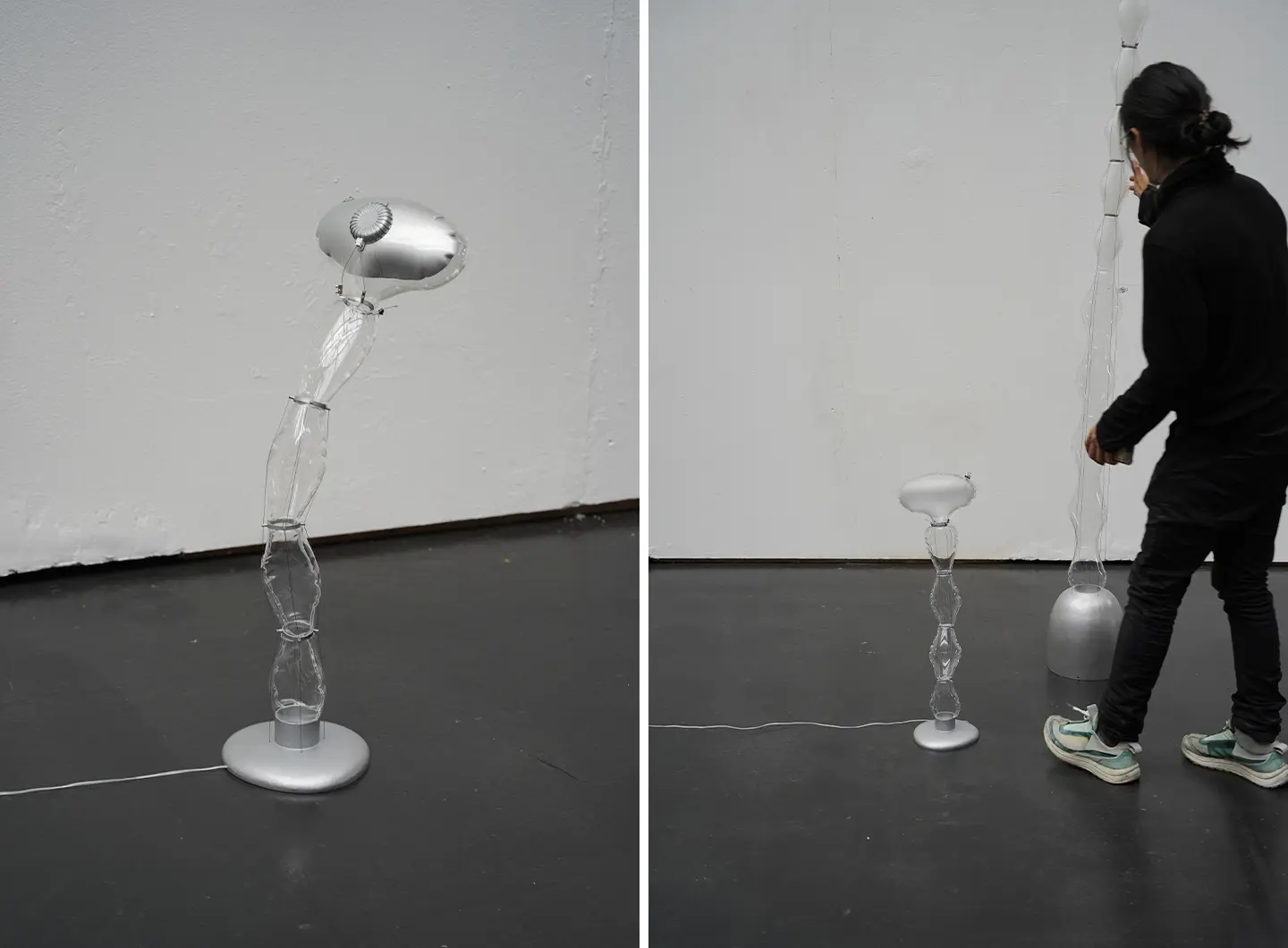Bubble Lamp transforms inflation into a restrained act of construction. Its translucent TPU body is shaped and stabilized through internal tension, giving the lamp a suspended, almost breathing quality. The segmented surface diffuses light gently, avoiding the theatrical effects often associated with inflatable objects. Studio Ololoo treats air as a collaborator, allowing form to emerge through pressure and balance. The lamp occupies space quietly, precise yet unobtrusive, asserting presence without dominance.