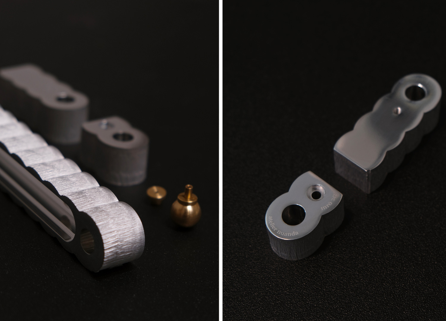 The attention given to the aesthetic aspect of the final product is, of course, an integral part of the project, which does not compete with the technical aspects but rather engages in a continuous dialogue with them. The surface of Inrō recalls the calm sea, slightly rippled by the wind, and the delicacy of crinkled tissue paper. This aesthetic effect is achieved through the cooling and subsequent crystallization of the aluminum following the laser-cutting process.