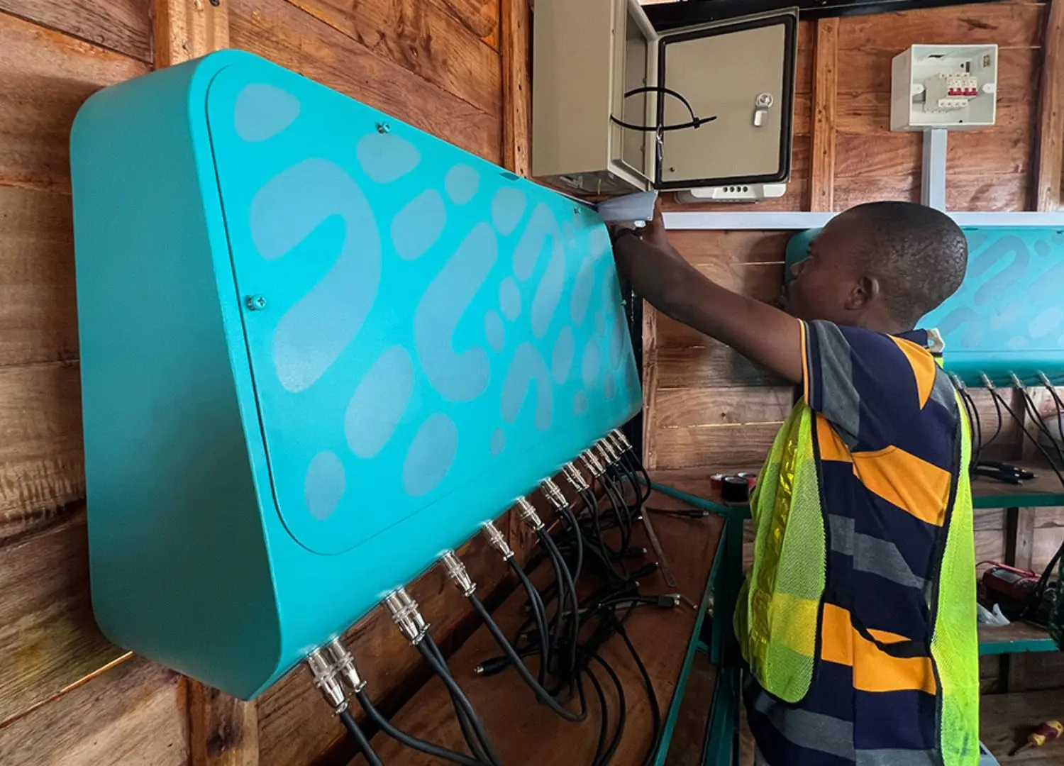 The hubs were designed by DNM Architecture, and they also reflect this human-centred methodology; natural ventilation flows through windows, a Dutch door, and building soffits, which together provide better cooling for both the Stars and the equipment. The hubs arrive flat-packed to improve transportation, and are assembled on-site in a single day without power tools, simplifying the labour of local workers. The foundation also includes an adjustment system for uneven ground.