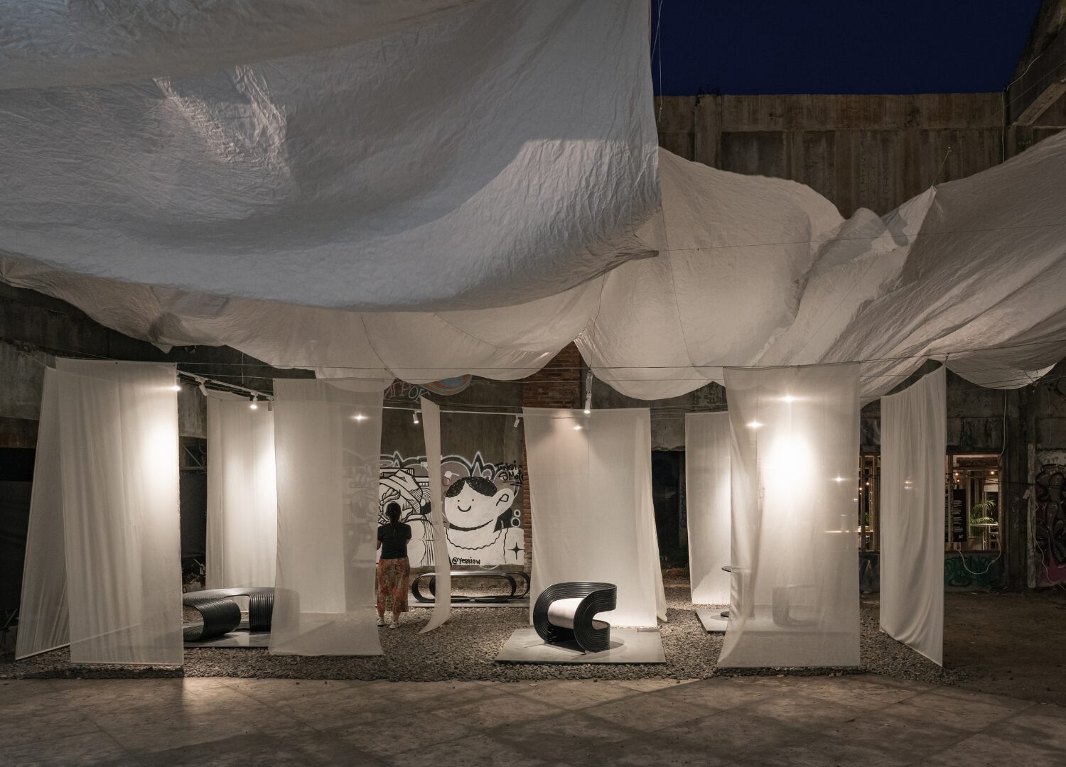 One of the highlights was Communal Objects, developed in collaboration with Millimeter Manifesto — a collective of nine Indonesian designers — CushCush, LagiLagi, and CushCush Gallery. Together, they created benches, high tables, and pedestals distributed across the event area, all designed to be easy to replicate and assemble. Another standout was Light Between Lines by Studio Andramatin, an architectural installation-bookshop built entirely from recycled paper tubes.