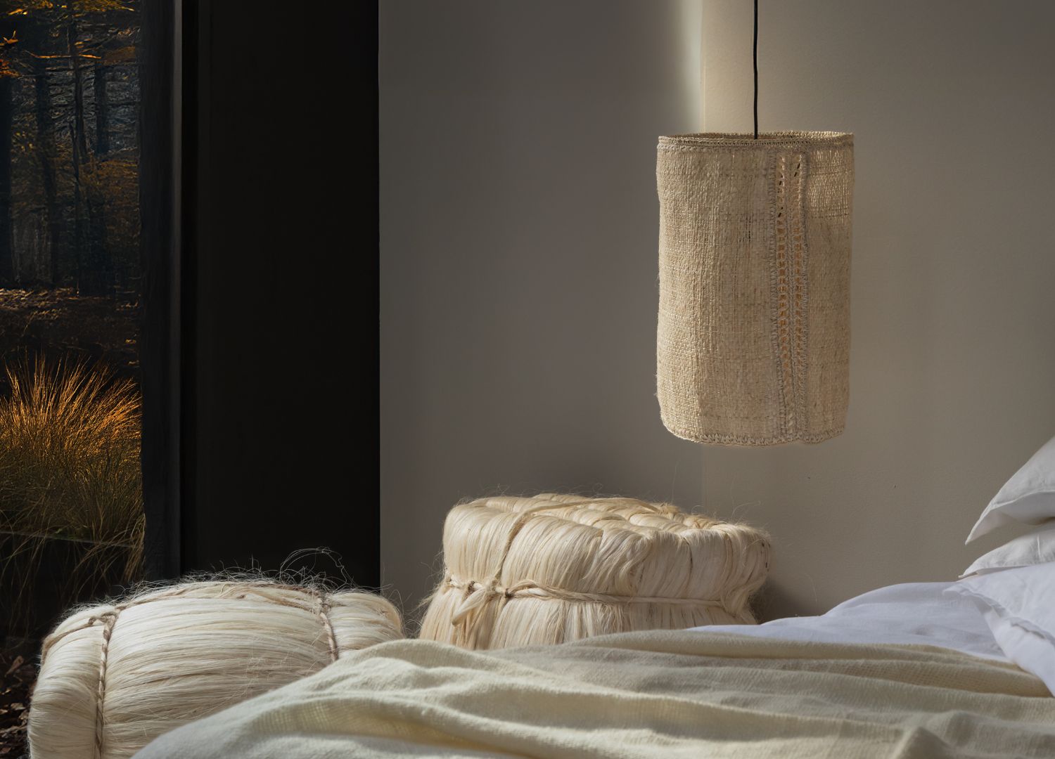 Each Rengo lamp is shaped by time and patience, both dictated not only by the processes required to work the fibre but by nature itself. The Rengo story begins in the farmers’ fields, where workers patiently wait for the right moment to cut the stalks. It then passes through the machinery that extracts the fibre from the leaves, before moving to the water pits where the fibres are submerged for hours and later dried in the sun, resting quietly on ropes or stones. The story continues unfolding slowly, step by step, with the fibres carefully combed and dyed—using exclusively natural pigments—before returning once more to the artisans’ hands for spinning and final weaving.