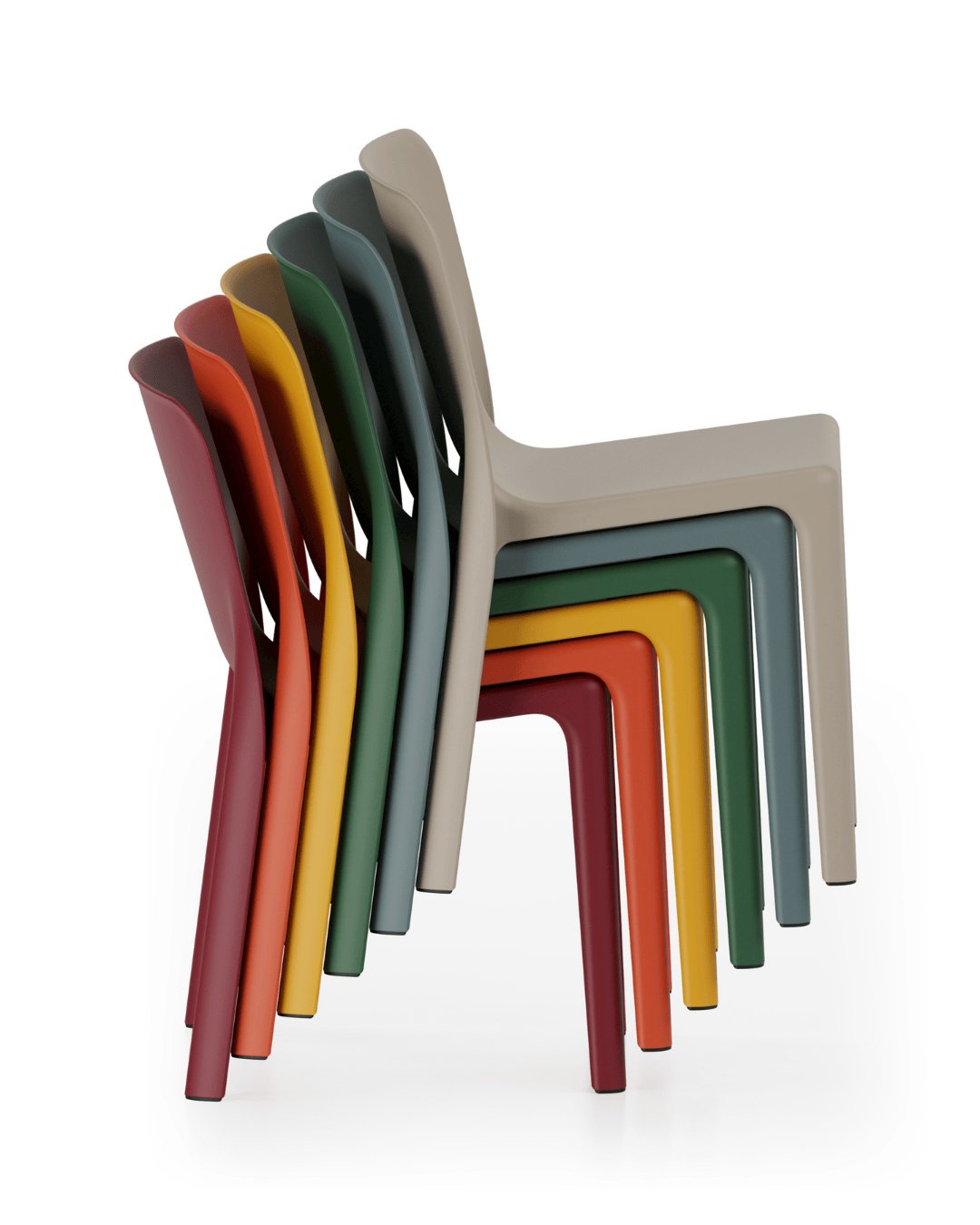 The chair is released with or without armrests and delivers high performance even with intensive use in high-traffic environments, such as public spaces, bars and restaurants. All versions are stackable and can also be stacked on top of one another. The colour palette includes warm, cool and neutral shades, designed to complement a variety of architectural settings and environments.