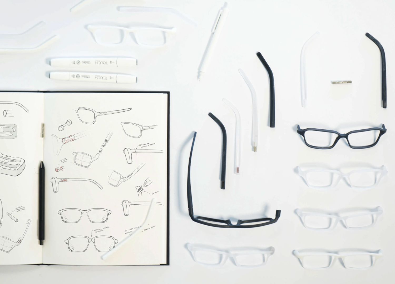 Available in various colour combinations, which can be mixed and matched to create different styles, Sapetti envisions his eyewear collection to be made from high-grade injection-moulded plastic using 3D-printed nylon. Opting for this production process would allow a tighter fit, as the temple tips are heated during the final fitting, allowing them to be closely tailored to the size of a customer’s head.