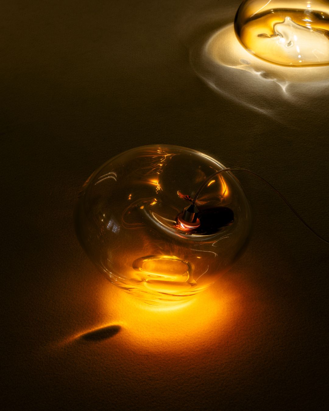 Among the works presented in the exhibition, El Deseo is a wall lamp hidden behind the last wall of the exhibition space, but it stands apart from the rest as the studio’s newest entry. The piece stems from a conversation with Pedro Almodóvar, as the film director had fallen in love with the studio’s work years ago, even featuring one of their lamps in his movies. Over a long discussion about lighting, Pedro suggested something specific: a wall lamp with indirect light.