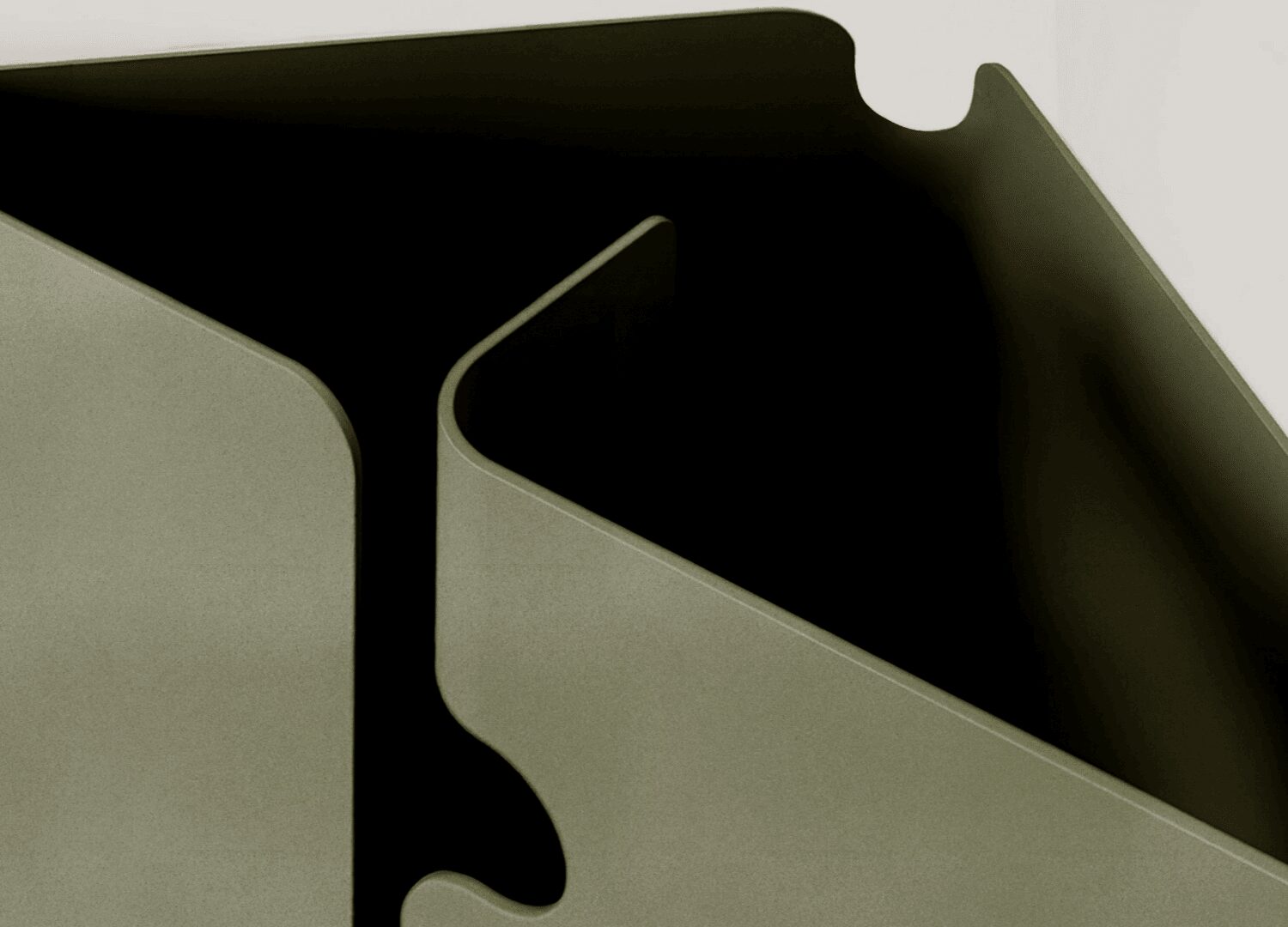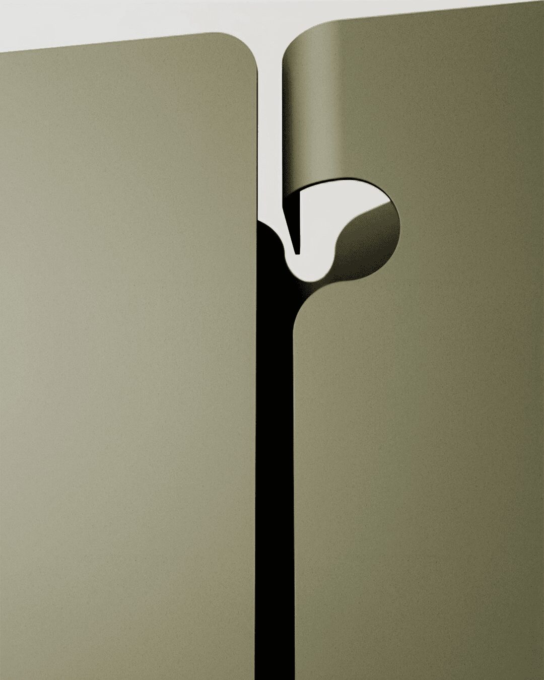 The designer also considered the production process: Dip is made from a single metal sheet that is bent and cut at strategic points, creating precise structural details designed both to emphasize its uniqueness and to ensure greater usability. On the front, the umbrella stand features a vertical slit designed to facilitate water evaporation. A curvature at the top conceals a folded metal section that forms a hook for small umbrellas, preventing them from slipping to the bottom.