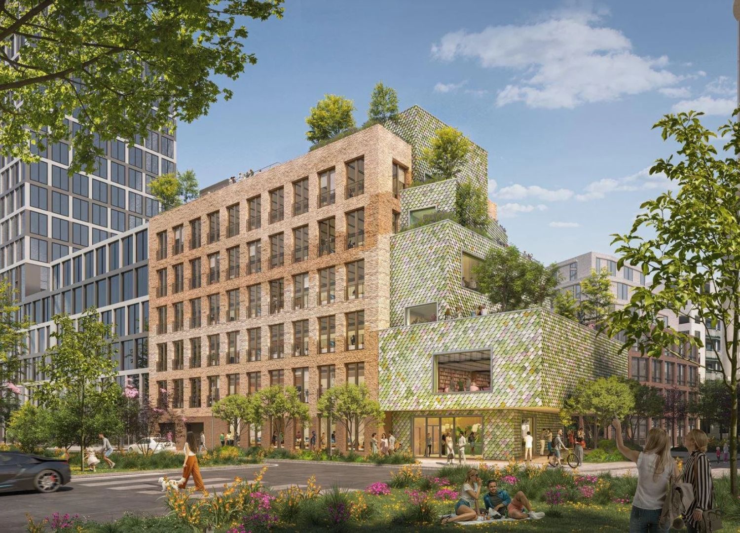 One of the company’s latest projects is MVRDV’s MONACO offices, a six-story structure developed for Rock Capital Group, planned to be completed during 2026. The building is made of two distinct architectural volumes, designed to express the duality between work and play. ‘Work’ is a cubic block clad in reclaimed bricks sourced from regional demolition, while ‘play’ is a dynamic façade clad in colourful Pretty Plastic tiles, in six shades of grey, green, and ochre in a fish scale pattern.