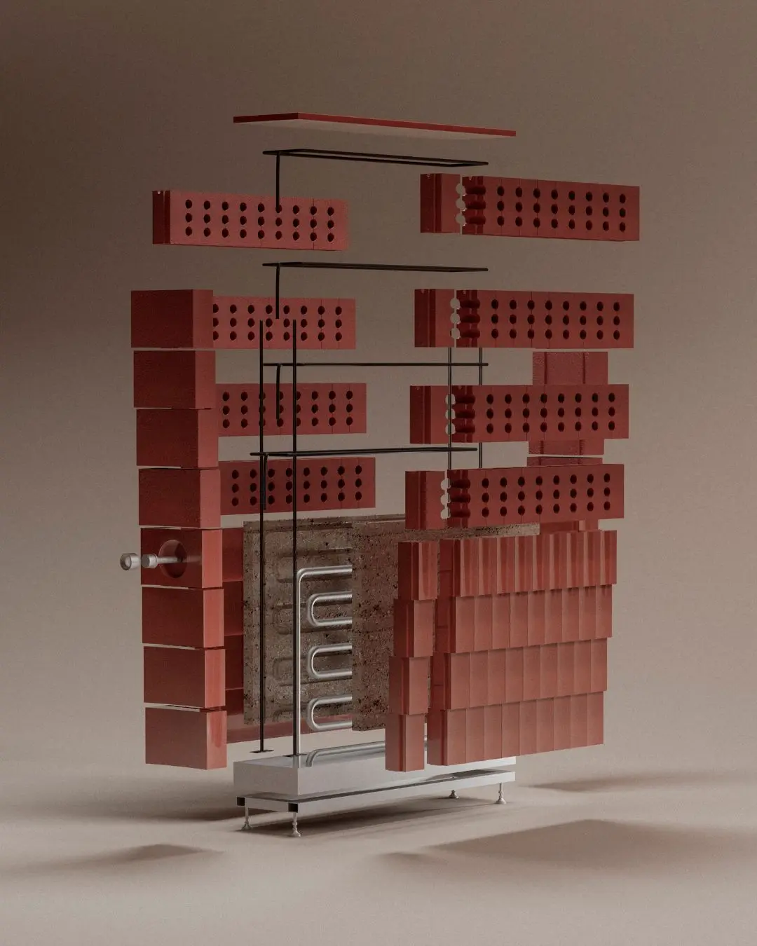 What if a heating system did not become dead weight every summer? Swiss designer Salla Vallotton asks this question through Celcius, a project developed at ÈCAL in Lausanne that reimagines terracotta as a year-round domestic companion: storing warmth in winter, shedding heat in summer, analogically.