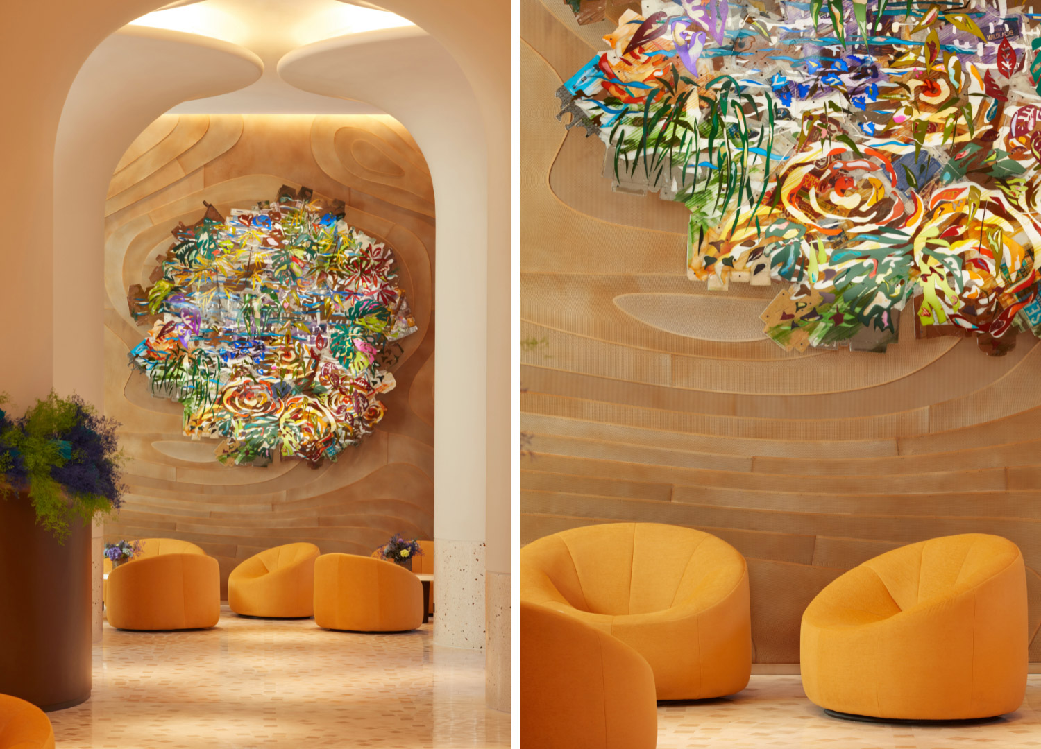 Conceived first and foremost as a gallery of art, fashion, and design, SO/ Paris—like its sister properties in some of the world’s most vibrant and cosmopolitan cities—stands out in the boutique hotel scene for its creative, multidisciplinary approach to luxury. Stepping inside SO/ Paris feels a bit like continuing a dreamy stroll through the city itself: every detail of the hotel evokes its Haussmannian architecture, its immense artistic heritage, the couture elegance of Parisian fashion, and its avant-garde design spirit. These references become instantly apparent upon entering the hotel’s magnificent lobby.