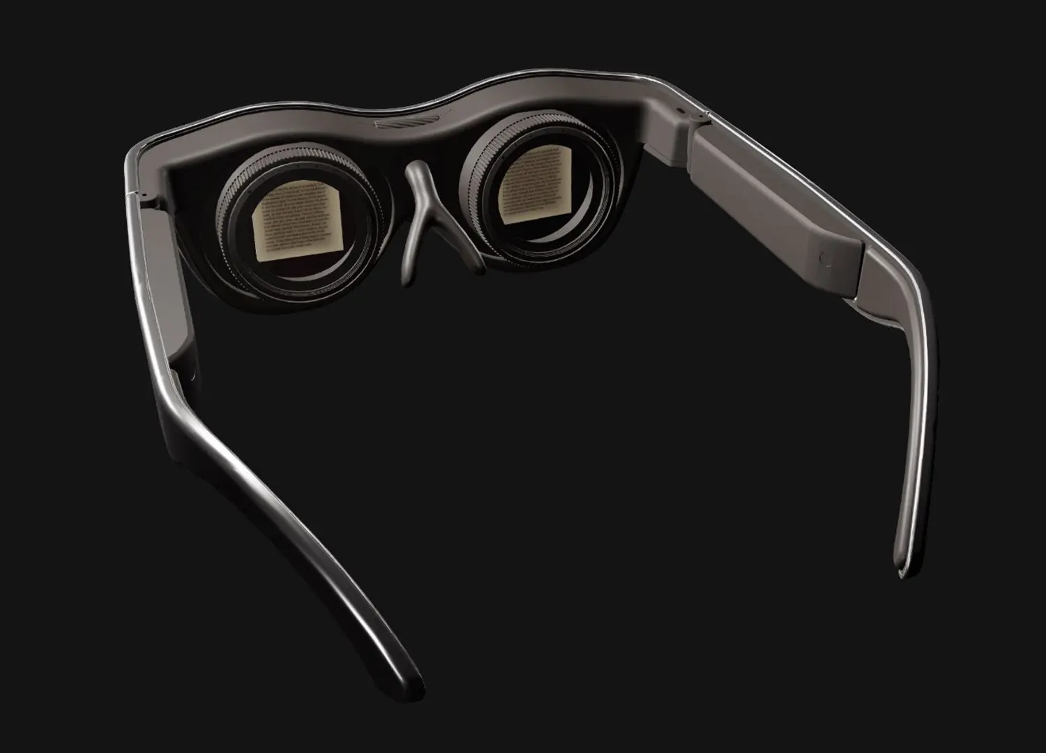 The reading glasses weigh just 104 grams and provide up to 25 hours of battery life for pure, distraction-free reading. The device employs two 1.3-inch e-ink displays, lit on the side with warm 3000K LEDs, with adjustable focus. The experience is navigated through a handheld remote, a choice that might seem retrograde, but instead speaks to being simple and intuitive, allowing easy usability without having to learn complex eye tracking or unnatural hand gestures.