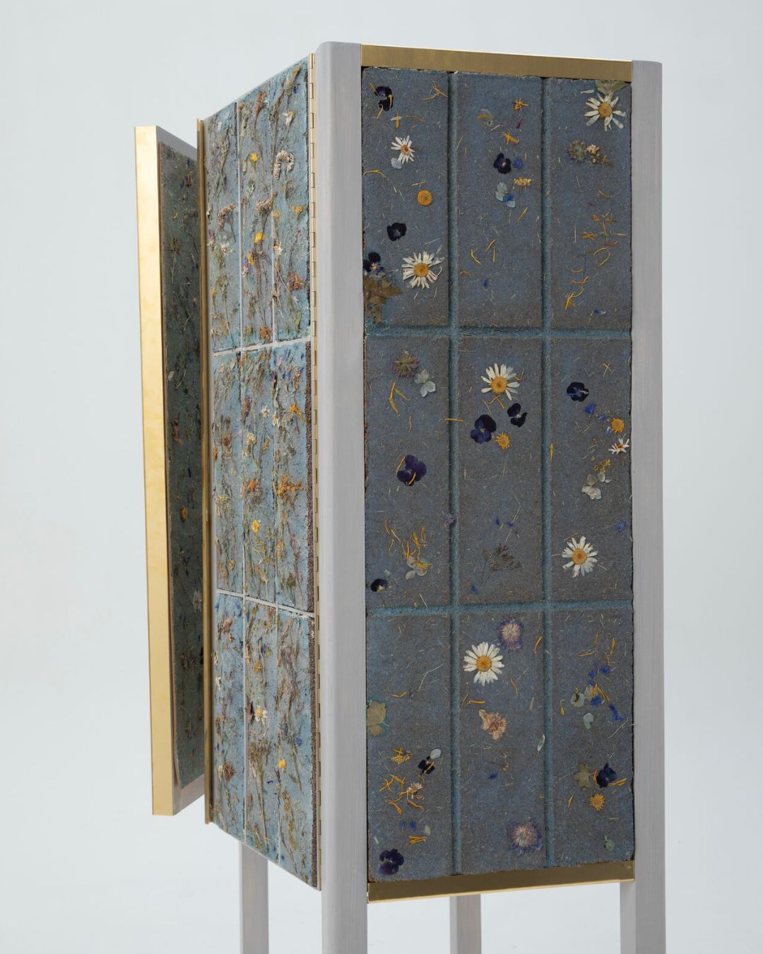 Presented through a cabinet inspired by historical herbarium furniture, the project embeds botanical elements directly into the material. Light, touch and everyday use activate the surface, allowing its texture, colour and structure to emerge over time. Anne Ländle’s work connects material innovation with local ecosystems, proposing a future where furniture is cultivated, rooted in place, landscape and biodiversity.