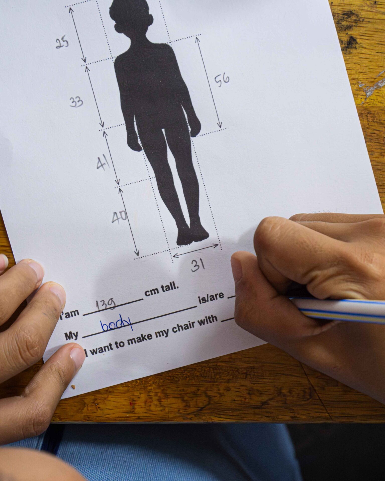 Drawing their chair designs, measuring their own bodies, creating prototypes, and finishing the actual chairs with crayons: these moments, one by one, were at the heart of the project.