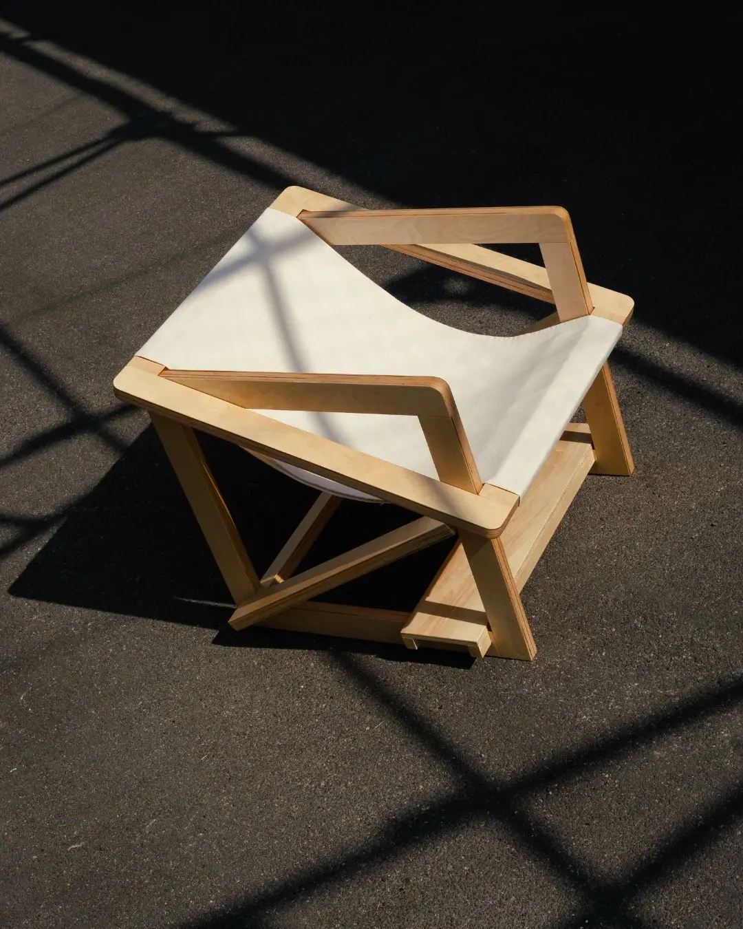 Incastro is built around a frame system available in solid oak or birch plywood. The frames interlock through precision joints that simply slot together in an intuitive sequence; the chair invites its owner to participate in its creation, understanding its structure. The fabric seating is customisable and can be interchanged through another mechanical interlocking system, which makes “dressing” the chair as simple as its assembly. When the chair is disassembled, it transforms into a vertical storage system that organises all of these elements in the smallest possible footprint.