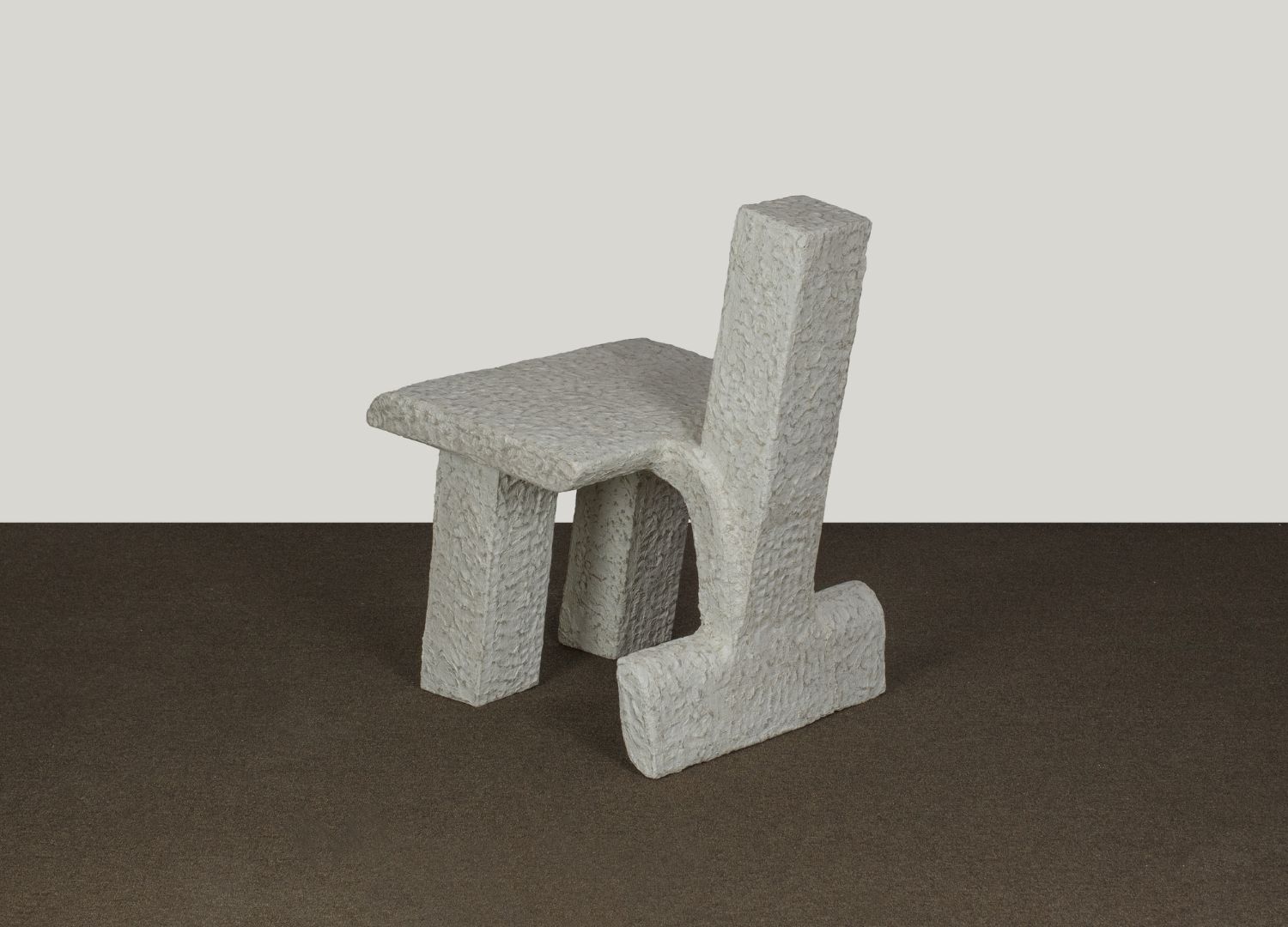 The collection is composed of two stools and four chair designs, all unified through the same material language, which CHanhyeok Kim refers to as coffee dough. This substance is made from a mixture of coffee ground waste and architectural binders like plaster or clay, creating a pliable, dough-like consistency. It is then applied onto a paper mold which creates the object’s shape, and left to dry and crack organically, so that no two pieces will ever be identical.