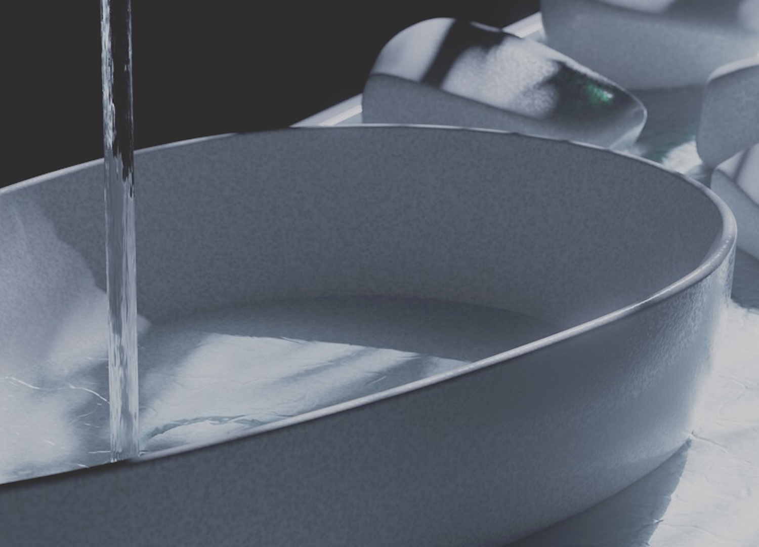 A third shift occurs at the level of surface, where design moves from object to interface. With Artis Sense, designed by Christian Haas for Villeroy & Boch with a colour concept by Gesa Hansen, the basin becomes a site of sensory modulation. Ribbed textures structure the surface, catching and diffusing light in a way that alters the perception of colour and depth, lying in an effect that goes beyond purely visibility, and the relief introduces a tactile dimension that engages the body in use. Technologies in mould-making and finishing now allow for fine-grained textures to be controlled with increasing precision and reproduced at scale – the surface is an active component that shapes spatial and sensory experience.