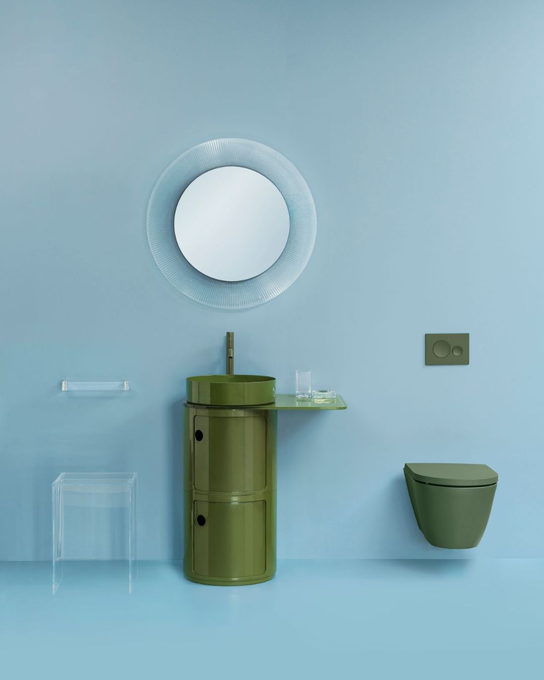 Alongside this introspective exploration, Laufen’s collaboration with Kartell introduces a different yet complementary direction: the integration of the bathroom into the broader domestic environment. More than a decade after the launch of the original Kartell by Laufen collection, this new chapter, under the creative direction of Ferruccio Laviani, signals a shift in how bathroom elements are conceived and positioned.