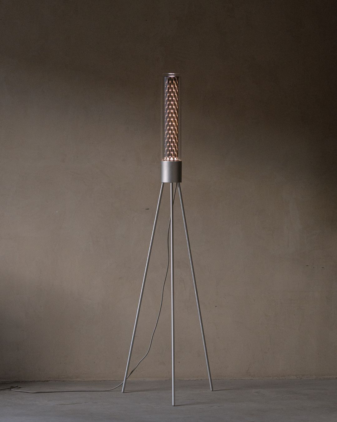 The three legs of the lamp can be removed to make it a table lamp, for a cozier and more intimate setting. The light can also be modified by adding a module made with SLS printing technology, to dim its strength and create indirect illumination. In this way, the object become sdynamic, creating different responses and relationships with its users.